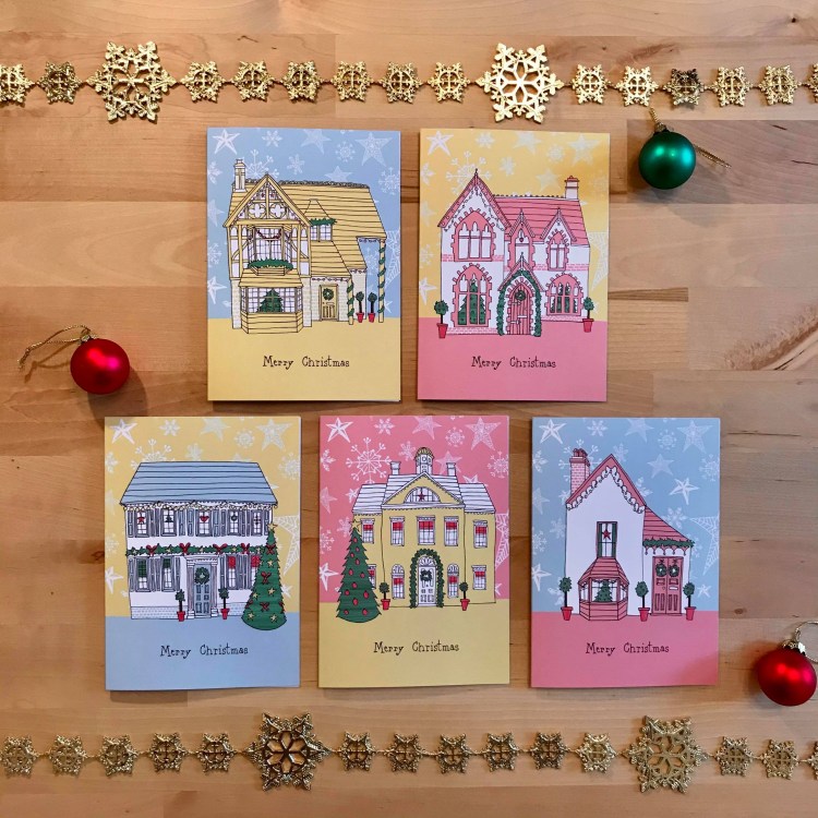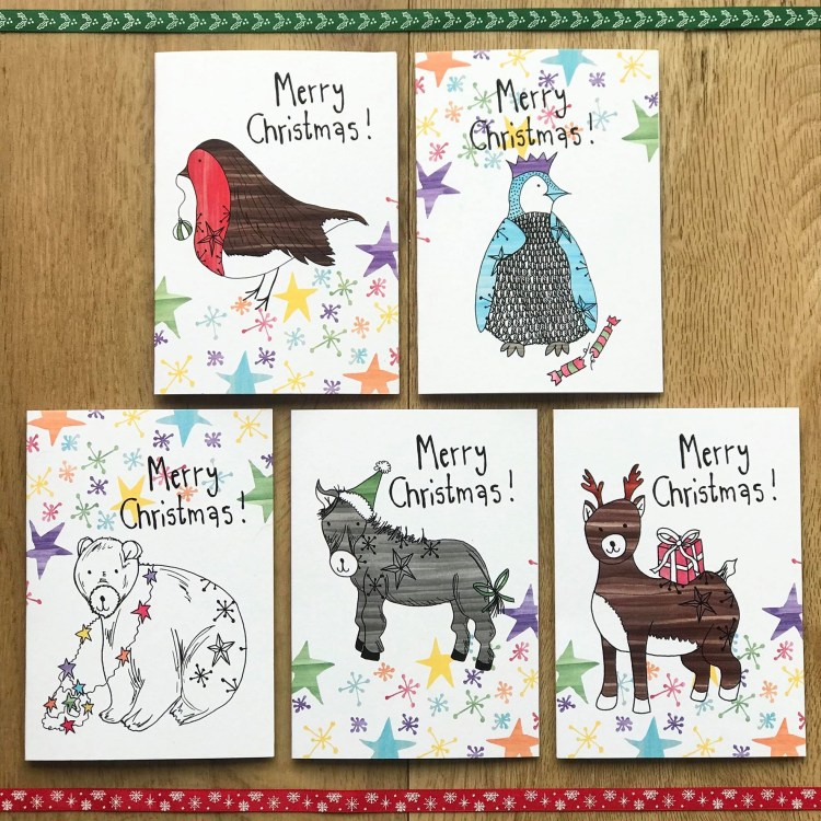 I release new occasion cards every year and my designs are created using original line drawings and coloured with watercolour textures digitally.